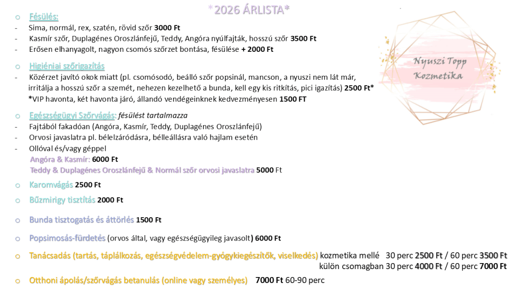 Kozmetika Árak